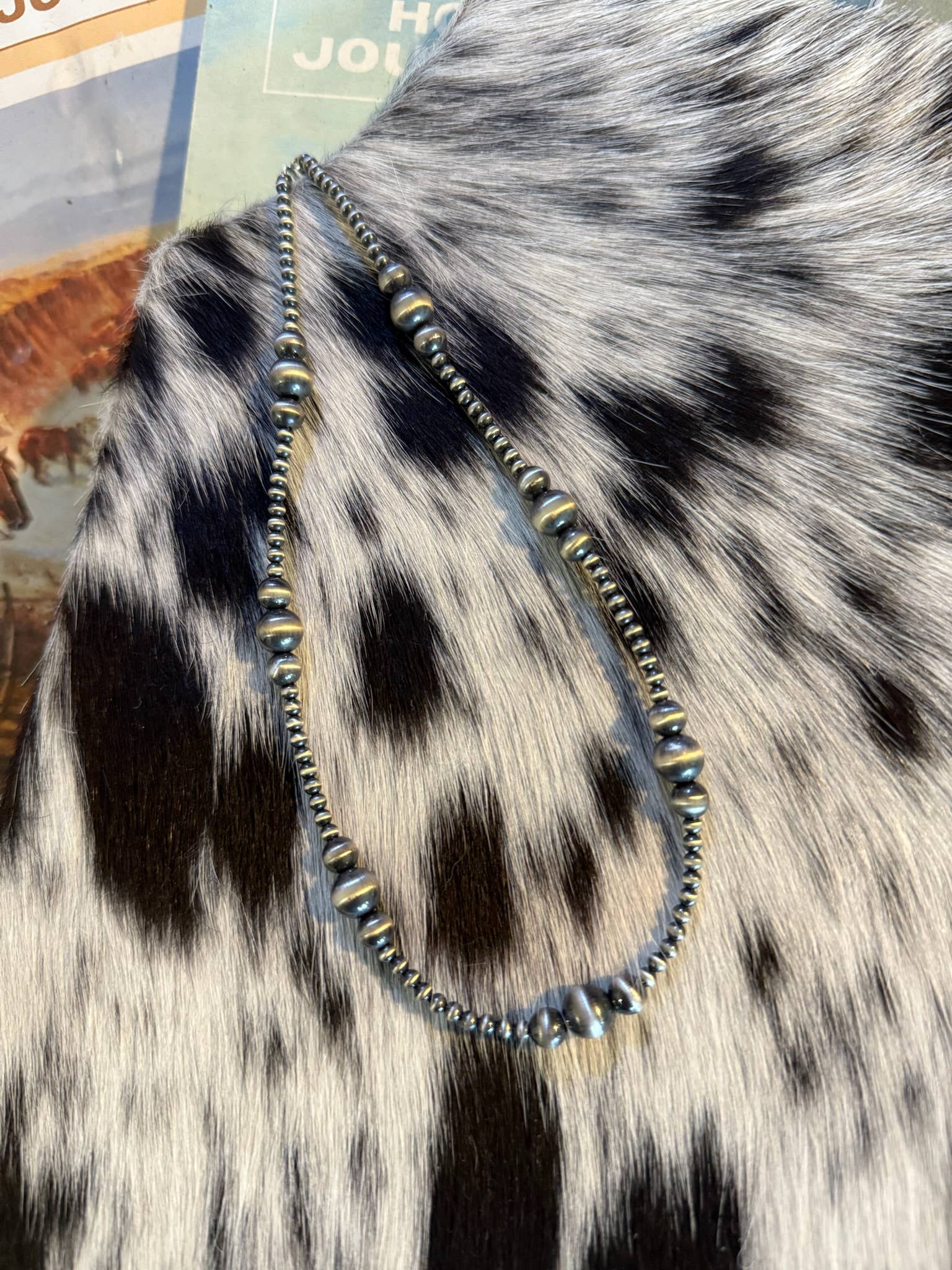 This classic graduated necklace has multiple focal points with the 6mm and 8mm hand polished sterling pearls nestled with 3mm pearls. This necklace can be a statement on it's own or stacked with others for a true statement look.